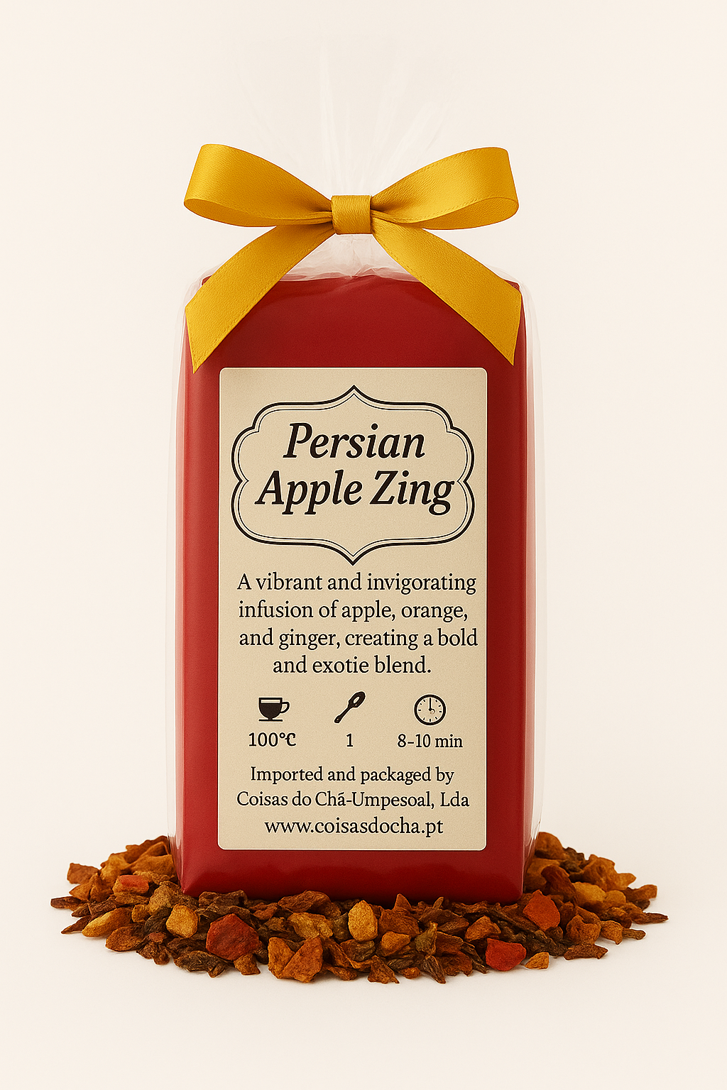 Deixe que o Persian Apple Zing traga uma explosão de sol, energia e sabor exótico ao seu ritual de chá, transformando cada gole num momento vibrante e edificante.